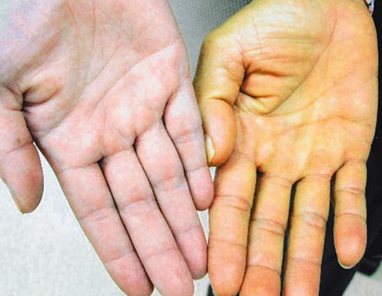Как мы уже поняли, встречаемость дефекта гена глюкуронилтрансферазы достаточно высока, но «желтых» людей в обычной жизни мы видим не так уж и часто, это связано с тем, что далеко не у всех носителей данной патологии болезнь обязательно проявиться в течение жизни. По данным большинства авторов, занимающихся исследованием данной болезни, только у 30% носителей дефектного гена уровень билирубина в крови повышается до значимых цифр, вызывающих от легкого желтушного окрашивания склер до ярко желтой окраски всей кожи и слизистых оболочек.